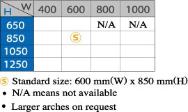 Conditions: Package dimension of 40*40*40cm; interval between packages 20cm; standard arch size 600mm(W)*850mm(H); conveyor speed: 36 m/min