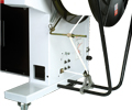 Simply insert the strap into the feeding rollers from the coil side of the machine and then push the "reset" button. The machine will automatically feed itself without the need to access to the inside of the machine. No need to remove it from the line for strap feeding. Easy strap loading.