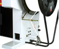 Simply insert the strap into the feeding rollers from the coil side of the machine and then push the "reset" button. The machine will automatically feed the strap without the need to access to the inside of the machine. Easy strap loading.