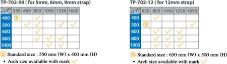 | P.P. Strap Requirement | 5 mm, 6 mm, 9 mm, 12 mm |